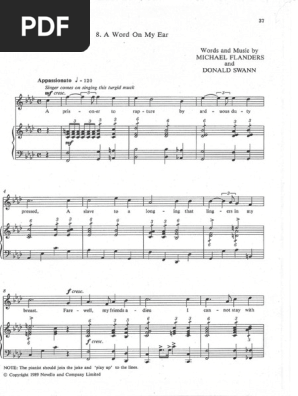 FREE Sheet Music PDF for Piano Download and Print Sheet Music PDF. Through their musical revues and recordings Flanders and Swann made these songs popular during the late 1950s and through the 1960s.